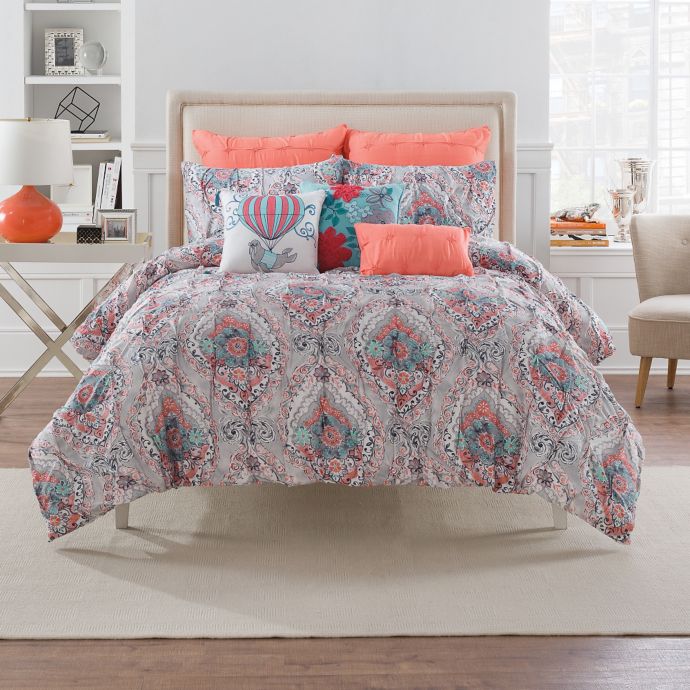 The Anthology Scarlet Comforter Set Is Beautifully Crafted With An Intricate Eyelet Design That Runs Hor Comforter Sets Bed Bath And Beyond Grey Comforter Sets