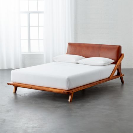 Drommen Acacia Bed With Leather Headboard Cb2