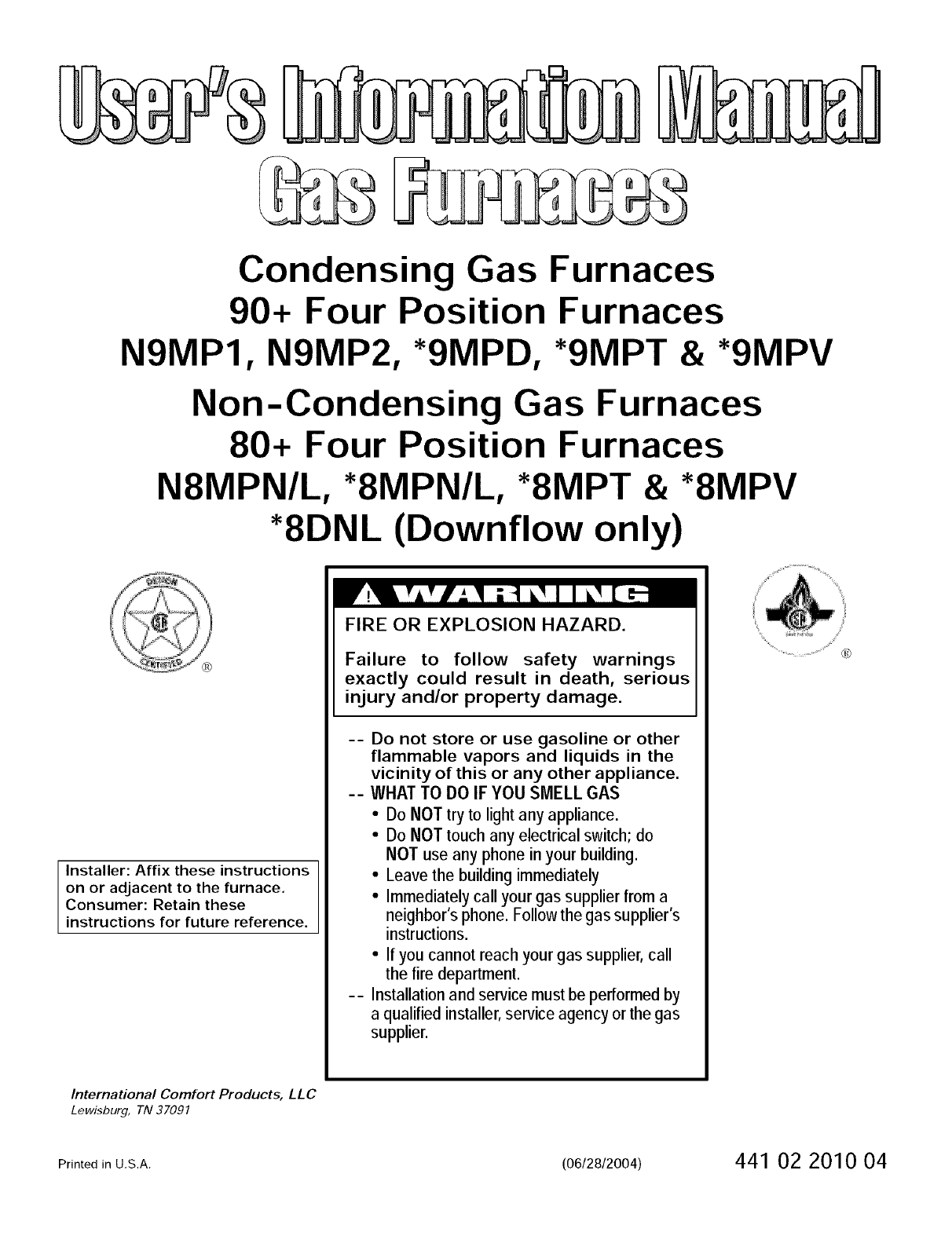 N9mpt International Comfort Products Gas Furnace