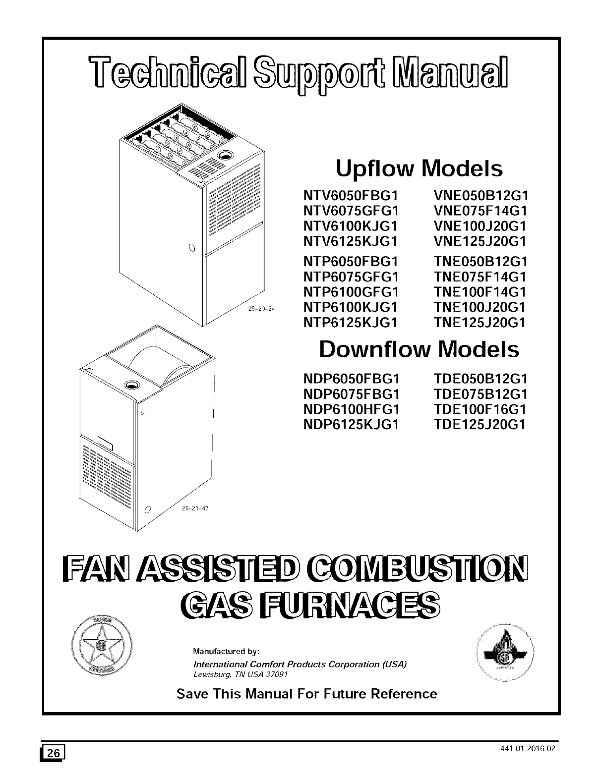 Fbf100f14a4 International Comfort Products Gas Furnace Technical Support Manual