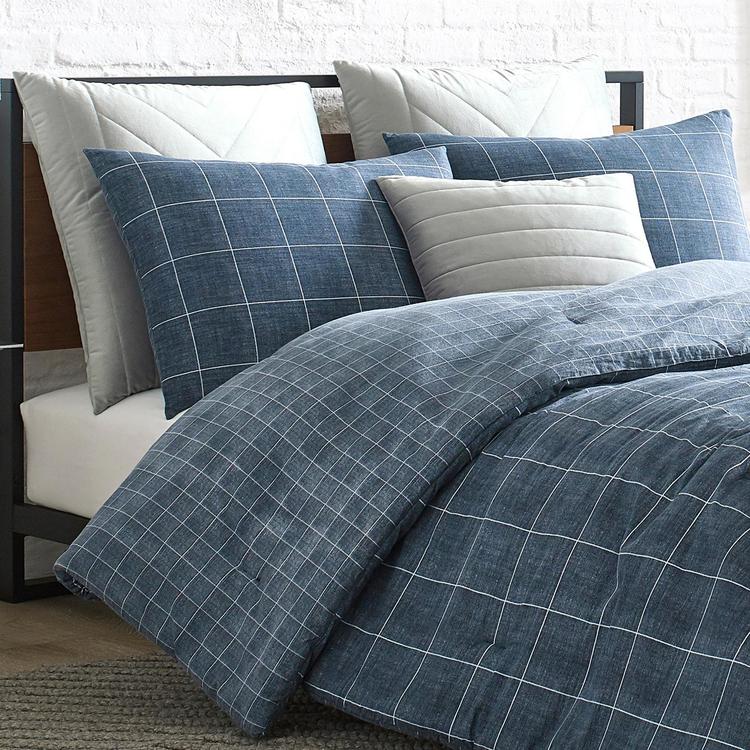 Kenneth Cole New York Holden Grid Blue Comforter Set Overstock 30567554