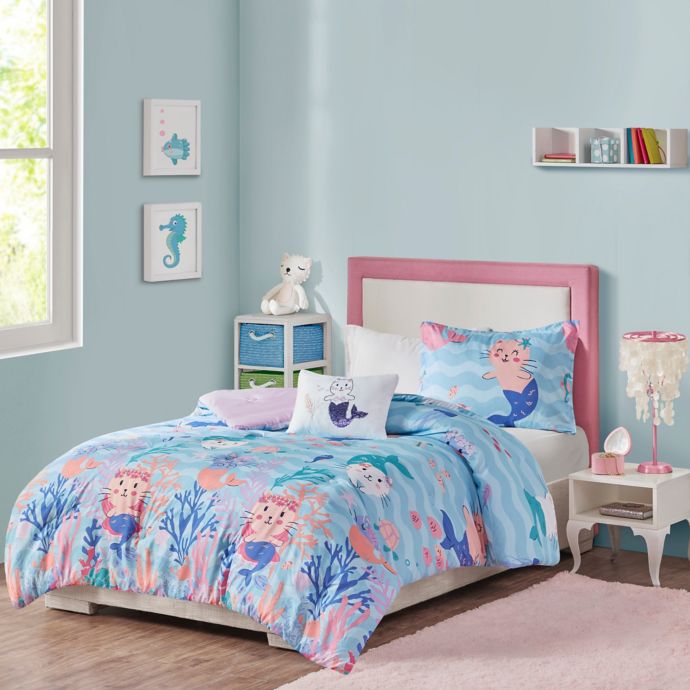Mi Zone Kids Playful Purrmaids Comforter Set In Aqua Pink Bed Bath Beyond