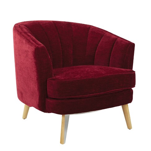 Amazon Com Elle Decor Celeste Upholstered Mid Century Channel Tufted Accent Chair Microfiber Velvet Armchair For Living Room Burgundy Furniture Decor