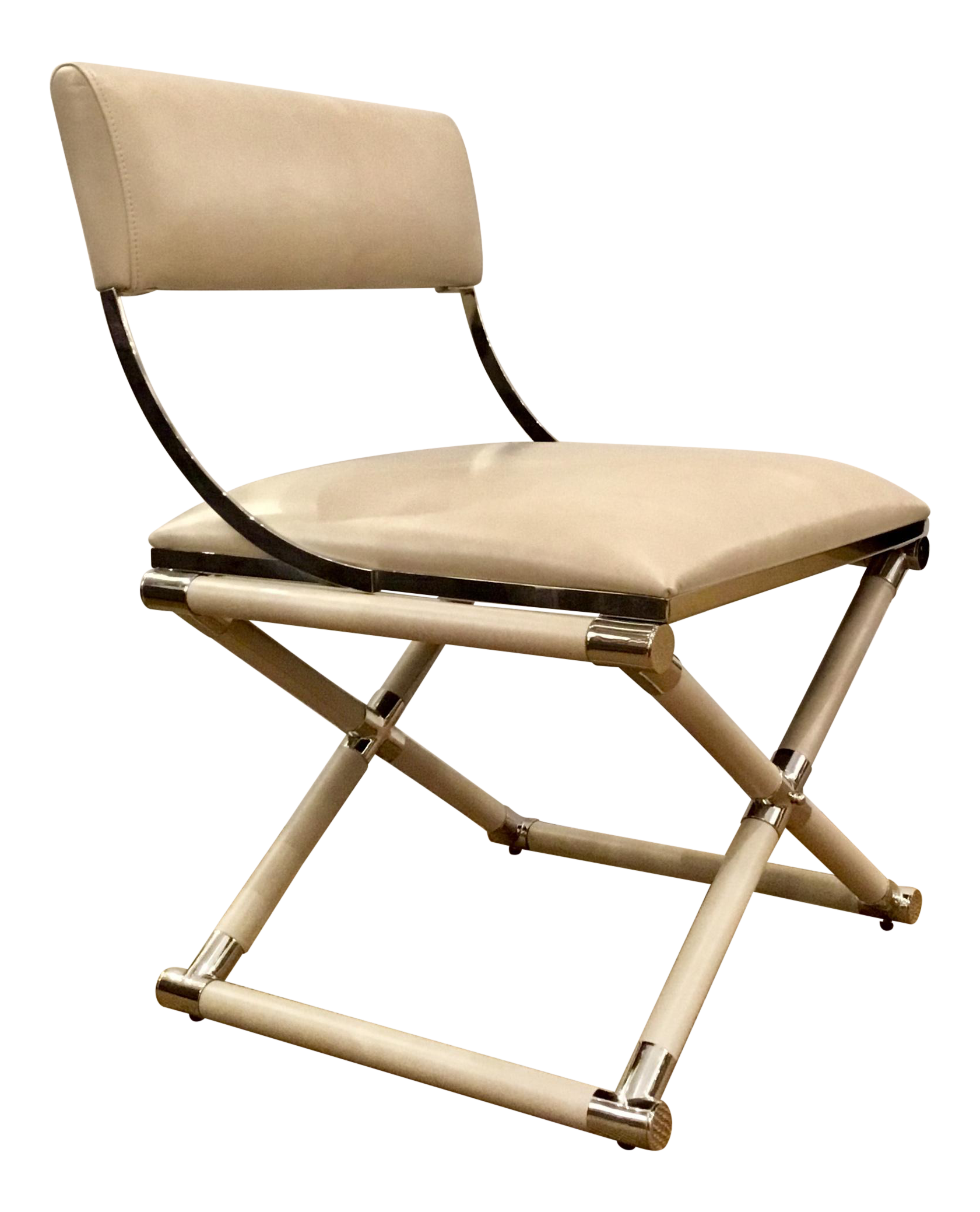 902183 Orren Ellis Loizzo White Faux Leather Chrome Legs Mid Century Modern Accent Chair