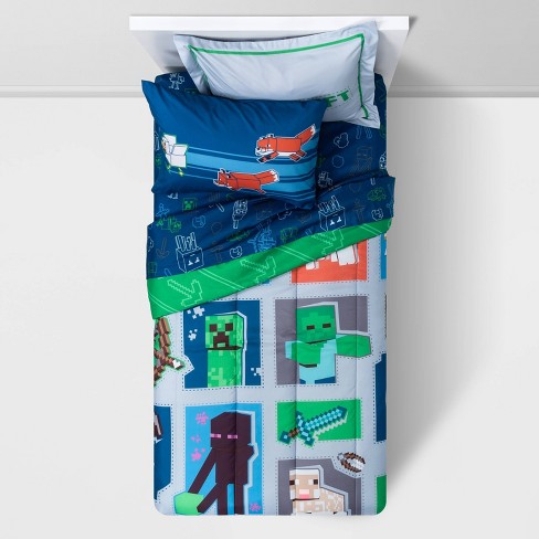 Minecraft Twin Bed In A Bag Bedding Set With Bonus Tote And Mini Pillow Buddy Walmart Inventory Checker Brickseek