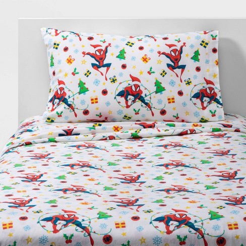 Twin Spider Man Holiday Flannel Sheet Set Target