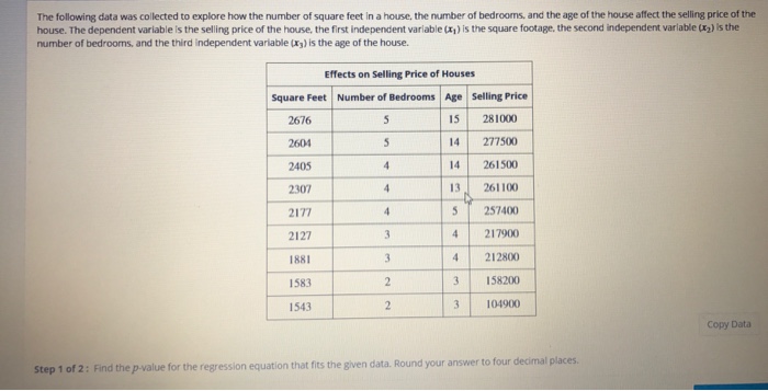 Solved The Following Data Show The Number Of Bedrooms Th Chegg Com