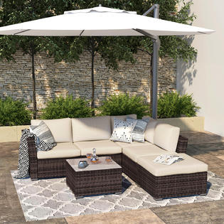 Amazon Com Flamaker 6 Pieces Patio Furniture Set Outdoor Sectional Sofa Outdoor Furniture Set Patio Sofa Set Conversation Set With Cushion And Table Beige Garden Outdoor