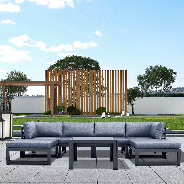 Oahu Outdoor Patio Furniture Sofa Sectional 7 Piece Set Tropical Outdoor Lounge Sets By Urban Furnishing