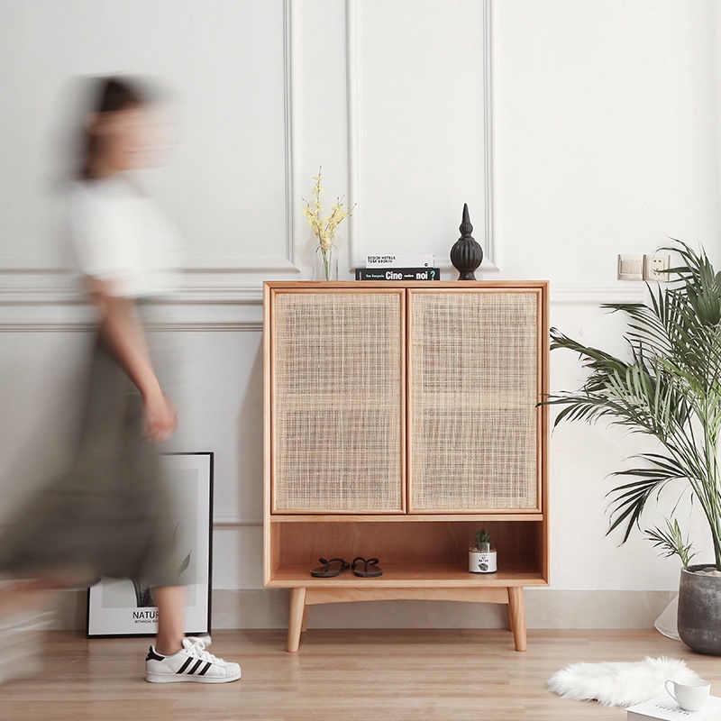 Ready Stock Nordic Solid Wood Entrance Shoe Cabinet Japanese Style Rattan Locker Simple Modern 2 Door Shoe Cabinet No Installation Required Shopee Singapore