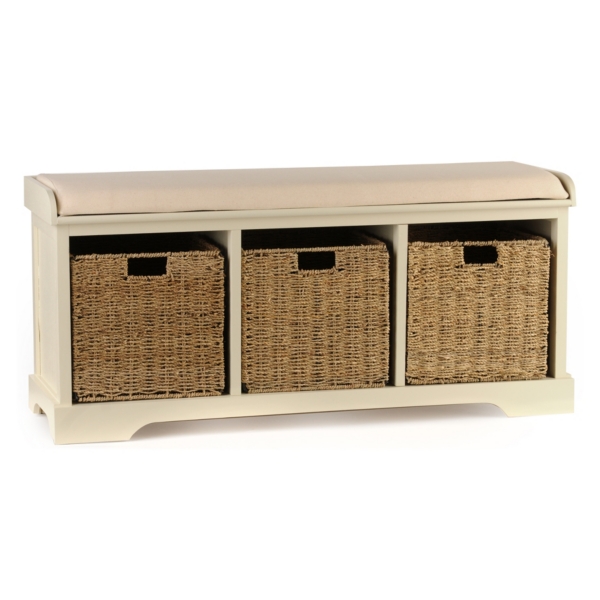 White Hall Bench Storage With Baskets And Cushion Basket Storage Unit Ebay Hall Bench With Storage Bench With Storage Storage Baskets